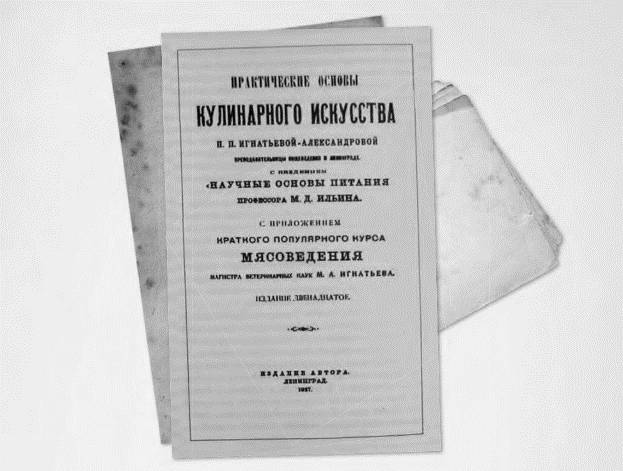 Подводя итоги этого периода нашей кухни, невозможно не упомянуть еще одну книгу, еще одного автора. Помните, во введении мы говорили о классике нашей кулинарии – Пелагее Павловне Александровой-Игнатьевой и ее учебнике, на одиннадцати дореволюционных изданиях которого выучились тысячи поваров? Несмотря на трудности и лишения, она оказалась верна профессии. В 1920-е годы продолжала работать преподавательницей пищеведения в Первой практической школе поварского искусства и домоводства в Ленинграде. А в 1927 году ей удалось переиздать свою книгу. Как и раньше, работа была дополнена «Кратким популярным курсом мясоведения», написанным ее мужем М.А. Игнатьевым (скончался в 1919 году). Впрочем, издание сложно назвать полноценным – оно урезано почти в три раза из-за «крупных перемен в области экономики и быта страны». Однако в салате оливье по-прежнему фигурировали рябчики, раковые шейки, оливки и трюфели. Был убран раздел «Обеды», блюда скомпонованы по группам, добавлена информация о пищевом значении (содержании белков, жиров, углеводов и калорий).