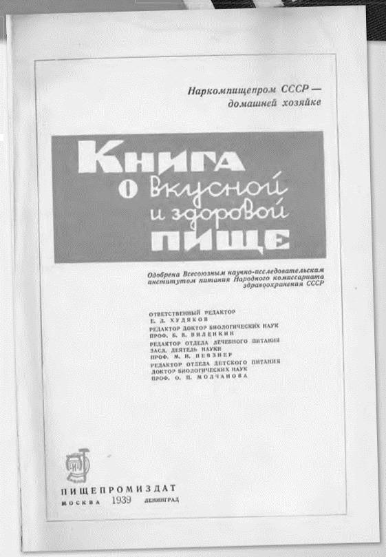 Однако вернемся к той самой «Книге…». Есть много мнений о ее содержании. Но, пожалуй, в одном все они совпадают: работа написана очень грамотными и профессиональными людьми. Она является удивительным сочетанием дореволюционной традиции с современным (тому времени) пониманием здоровой кухни. Можно долго спорить о диктате общепита в ней, об избыточном подсчете калорий и углеводов. Но вот никто не сможет сказать, что блюда и манера питания в книге 1939 года выпуска были отсталыми, «совковыми» и не соответствующими мировым тенденциям. Более того, вокруг написания этой книги сложился удивительный коллектив ученых, которые на много последующих лет возглавят направления питания и диетологии в советской науке.