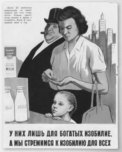 При этом все эти прогрессивные лозунги спокойно сочетались с комментариями идеологического характера: «В богатых капиталистических государствах, особенно в США… бедные слои населения лишены возможности есть досыта, а голодные армии безработных бесплодно пересекают пространства в поисках куска хлеба». Интересно, какие чувства вызывали эти пассажи у самого А. Микояна, недавно вернувшегося из поездки по США, где он своими глазами мог видеть все эти «ужасы»?