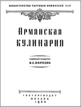 Наиболее известна вышедшая под его редакцией в 1960 году книга «Армянская кулинария»136. Она по праву стала наиболее полным и подробным сборником рецептов национальной кухни – более 300 (а в позднейших изданиях – до 500) оригинальных блюд и технологических приемов.