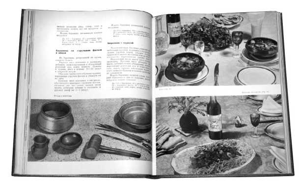 Таким же образом «дорабатывались» десятки национальных кушаний, которые в силу отсутствия исходных продуктов, пряностей либо просто из-за технологических соображений не могли быть воспроизведены в изначальном виде. Кстати, в 60-е годы этот процесс наблюдается не только в общепите, но и в «частной» домашней кулинарии. Изданная в 1955 году (и многократно тиражированная в последующем) знаменитая «Кулинария» дала своего рода «отмашку» этому процессу. В московских издательствах начинают выходить массовыми тиражами разнообразные «Блюда татарской (молдавской, узбекской, армянской и т. п.) кухонь». Далеко не все из них оказались действительно полезными – появилось множество «однодневок», дежурных изданий, созданных лишь для отчета и плана. Но были и книги, до сих пор вызывающие интерес, выдержавшие несколько изданий на протяжении десятилетий.