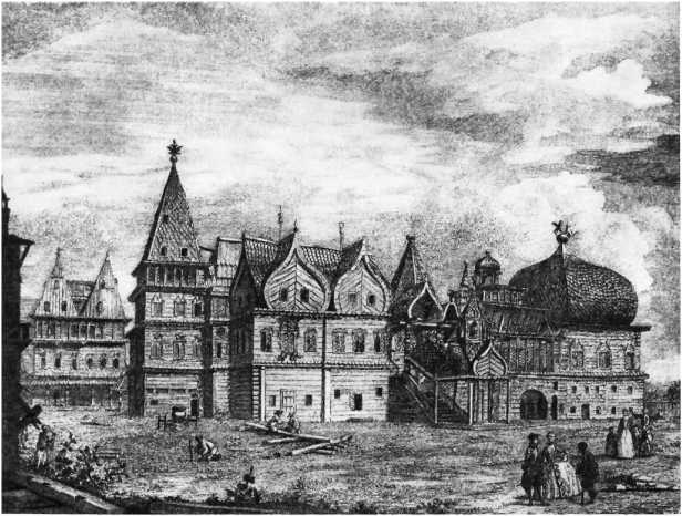 Деревянный дворец в Коломенском. Гравюра Гильфердинга (1780 год)