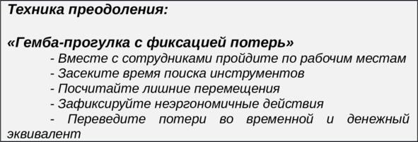 «Помните, мы по системе 5S распределили инструменты по ячейкам? Так вот, ребята жалуются, что теперь на каждую операцию времени в полтора раза больше уходит.»