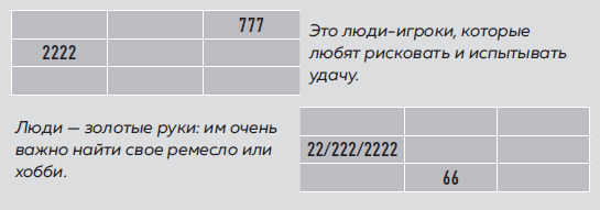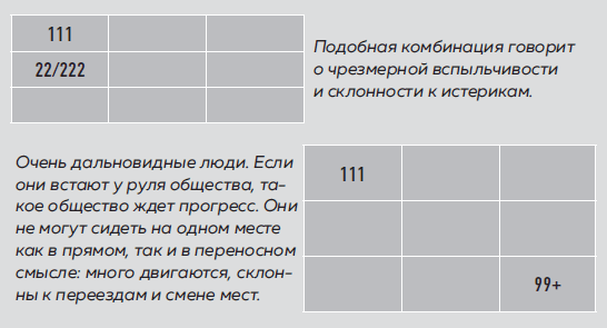 111111 – знак карьериста. Такие люди могут внешне держать лицо, но знайте, что внутри них бушуют страсти; это прекрасный характер, чтобы добиваться цели, но такой человек живет только своим умом.