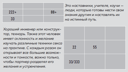 Человек с тремя двойками в ячейке «Энергия» бывает похож на того, у которого в матрице одна двойка: суетлив и не в меру подвижен, с периодами лени; такие люди очень быстро говорят. Но есть одно но: 222 – это знак человека с экстрасенсорными способностями. Безусловно, после того как вы увидели эти цифры в своей матрице, вам не начнут приходить видения будущего и вы не услышите мысли других. Но знайте, что у вас огромный потенциал, который может проявиться в определенных и, скорее всего, неожиданных для вас самих обстоятельствах. Научитесь использовать врожденную чувствительность и интуицию.
