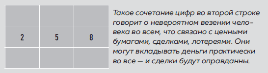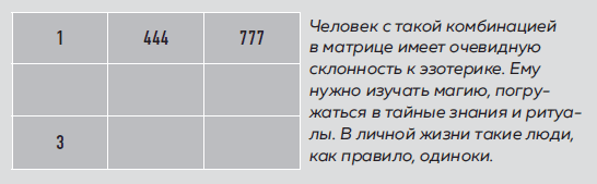Три семерки могут быть одновременно и даром, и проклятьем. Такие люди не столько пользуются удачей – они сами и есть удача для себя. Они могут управлять своей жизнью: то, что называется «быть кузнецом своего счастья», возведено в этом случае в абсолют; они знают, что принесет им счастье, и сами выстраивают к нему дорогу без тени сомнения. Собственно, сомнения и неверие в свои силы им противопоказаны; если вы видите такие показатели в ячейке, то даже не думайте разувериться в своей силе. Ваши мысли достойны того, чтобы их записать и опубликовать. Вы можете найти себя в сферах, связанных с людьми: преподавание, медицина, психология. Или займитесь наукой. Вы склонны идти напролом и в любом случае добиваться задуманного. Так же, как и 77, женщинам стоит сначала наладить личную жизнь, мужчинам – заняться карьерой.