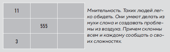 В табличках «Индивидуальные особенности» мы представляем только те числа, которые важны для рассмотрения конкретной ситуации. Это не значит, что в реальной матрице будут только эти числа.