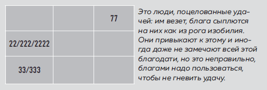 И поле для их деятельности, в отличие от людей с меньшим количеством чисел удачи, довольно ограничено – предопределено. Не отклоняйтесь от курса, который вы как удачливый человек, скорее всего, найдете очень быстро: семерки не прощают использования их силы исключительно в корыстных целях.