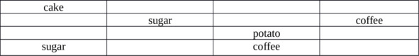 Cake, sugar, potato, coffee