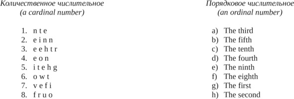 Собери количественное числительное, а затем найди подходящее ему порядковое числительное. Make up the cardinal number, and then find the right ordinal number.