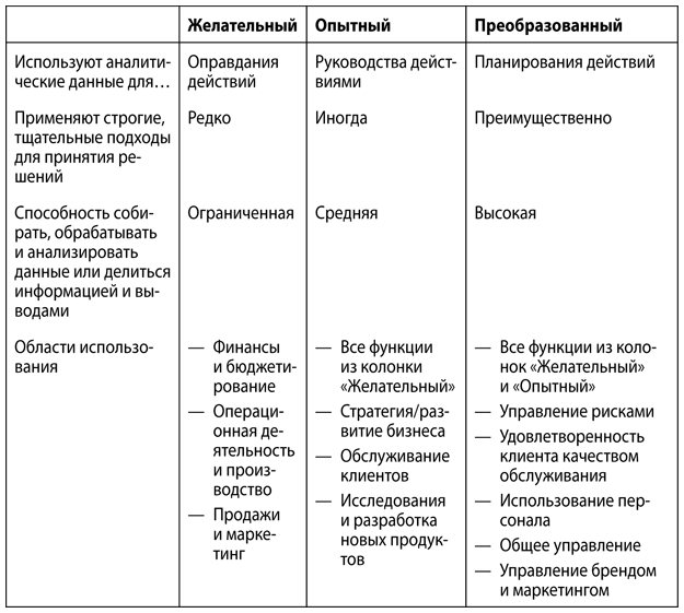 Таблица 1.3. Уровни аналитических возможностей: желательный, опытный, преобразованный