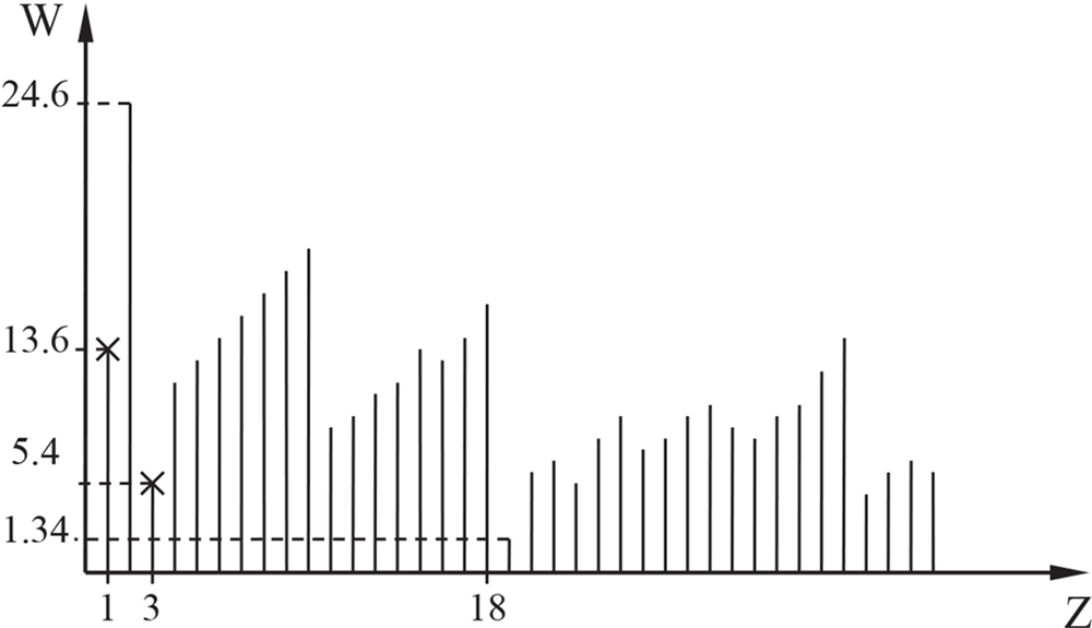 Чтобы вывести стабильный, отдельный атом из устойчивого состояния, необходимо внешнее достаточно мощное воздействие, имеющее энергию не меньше, чем энергия ионизации этого атома. На фигуре 6 приведён график зависимости энергии ионизации от атомного номера.