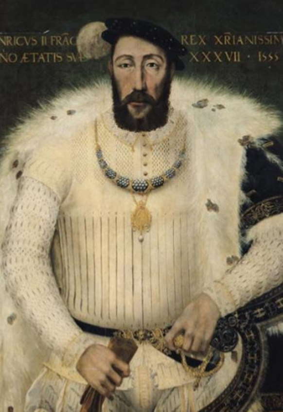Со словами: – « Да здравствует помазанник божий, исполняющий волю бога на земле, король Франции, Генрих 2»!
