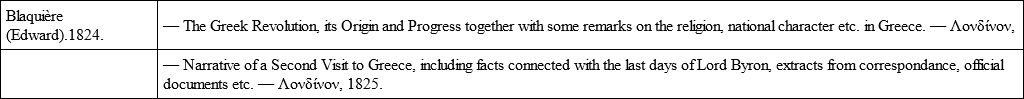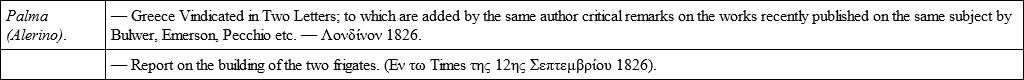 Gordon. – History of the Greek Revolution – β' έκδοσις, 2 τόμοι, Λονδίνον, 1844.