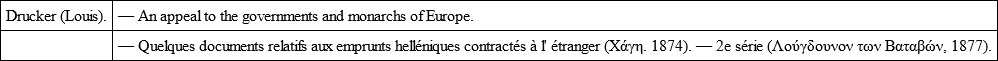 Λεβέντης (Α.). – Περί του δημοσίου των Ελλήνων χρέους του 1824 και 1825 και περί νέου δανείου. – Αθήναι, 1865.