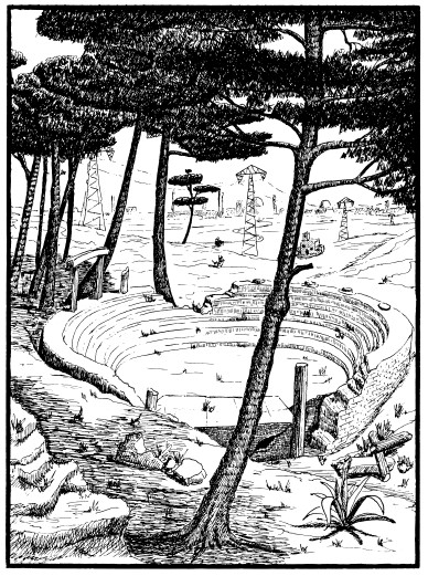 Театры эти похожи были на нынешний цирк, только построенный целиком из камня. Ряды для зрителей располагались ступеньками друг над другом, как в огромной воронке. И если поглядеть сверху, то одни из этих строений были круглыми, другие образовывали овал или половину круга. Называли их амфитеатрами.