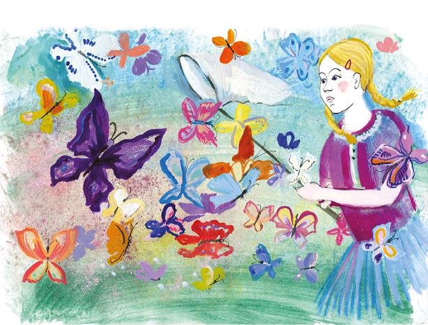 «Ой! – воскликнула Софи, – что это там у тебя под лестницей?» – «Да сачок для бабочек, дядя подарил». Софи быстро заговорила, поправляя рыжеватые волосы и одновременно надкусывая сочное зелёное яблоко. «Завтра пойдем на поляну за школой ловить бабочек, там их всегда много». Но у Софи на следующий день изменились планы. Кайса решила пойти одна. День был солнечный и тёплый. Она взяла сачок, стеклянную банку с крышкой и пошагала знакомой дорогой в сторону школы.