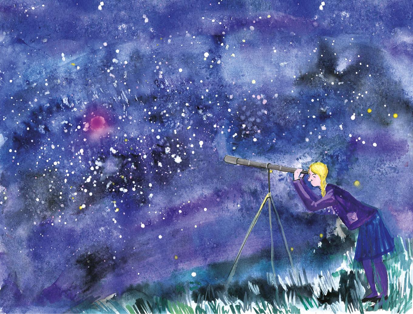 Кайса первая заглянула в телескоп: «Ой, сколько звёзд – большие, маленькие!»