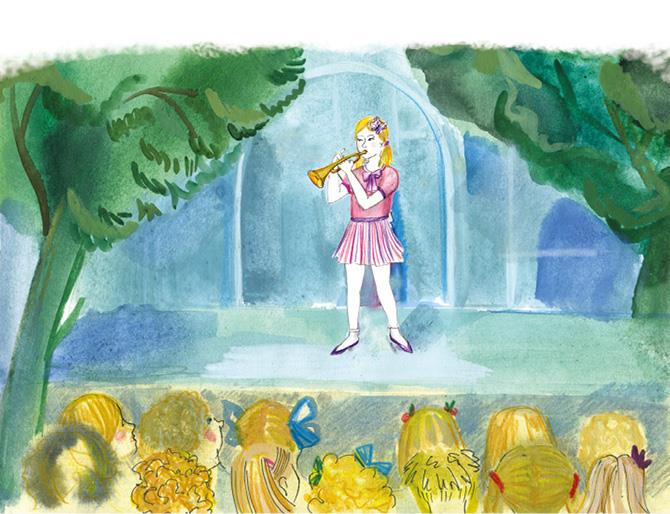 «Скоро концерт», – вдруг вспомнила она. Кайса почти целый год учится играть на трубе. У них в школе был строгий отбор, ребят отбирали для игры на различных музыкальных инструментах. Её выбрали как способную играть на трубе. Она очень гордилась, когда ей выдали красивый новенький инструмент в специальном футляре. Кайсе нравилось два раза в неделю ходить на репетиции. Один день она занималась с преподавателем индивидуально, а второй день училась вместе с другими ребятами, мальчишками и девчонками из разных классов.
