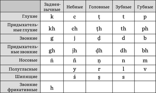 В санскрите есть: долгие и краткие гласные (a – ā; i – ī; u – ū), дифтонги (o, e, au, ai) и слогообразующие сонорные (ṛ – ṝ, ḷ – ḹ).