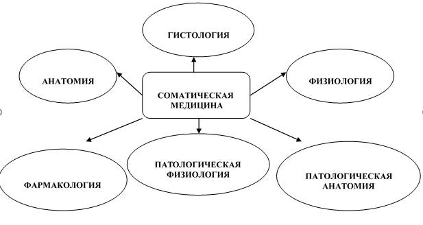 Являясь разделом медицины и имея общий объект познания (человек), психиатрия в качестве базовых дисциплин опирается на такой же набор предметов, что и соматическая медицина (рис. 6). Классическая психология при подготовке врача-психиатра не преподается.