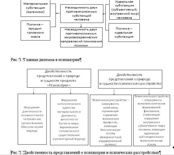 Двойственность представлений о природе и сущности психиатрии как самостоятельной научной дисциплины и психических расстройствах показана на рис. 2.