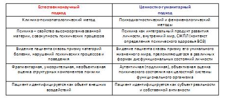 Приоритетность в психиатрии естественнонаучных (биомедицинских) представлений вступает в противоречие с гуманитарным личностно-ориентированным, онтологическим содержанием этой дисциплины – врачеванием души (различия этих подходов показаны на рис. 4).