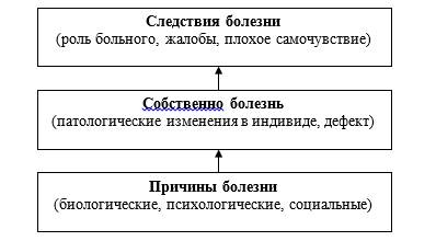 Конструкт болезни, существующий в европейской культуре, предполагает такую последовательность: причина – дефект – картина – следствия. Его можно выразить следующим образом (Н.В. Репина, 2003):