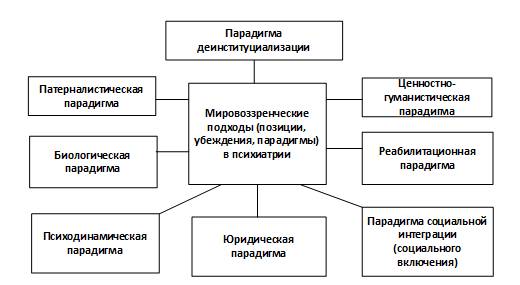 данные о природе психических расстройств, организации лечебно-диагностической деятельности находятся в рамках какой-либо парадигмы;