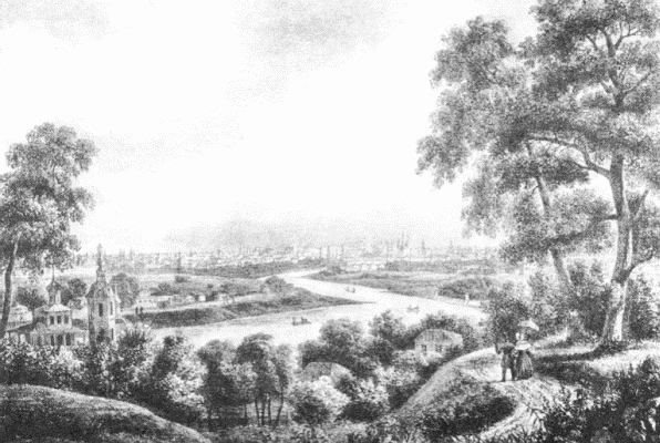 Москва.1825 год. Вид с Воробьёвых гор. Художник С. Кадель.