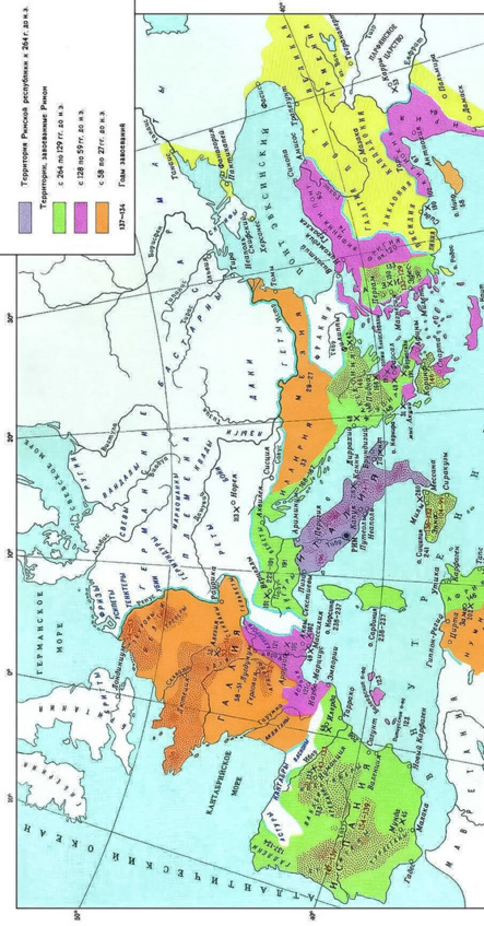 Одним из проявлений синтеза пространства и времени в картине мира римлян можно считать «увязывание» времени с конкретным местом: у каждой местности прослеживается существование своего, «местного», времени. Летосчисление от основания Рима также можно считать таким «местным» временем. Заметим, что восприятие римлянами своего города в качестве некоего хронотопа, в структуре которого присутствовало своеобразное восприятие и времени, и пространства, уже является доказанным. Нам остается добавить, что римляне, судя по всему, стремились путем завоеваний распространить свое «местное» (то есть римское) время на покоренные ими территории, «освоить» покоренные земли с помощью своей – временнóй —системы упорядочивания пространства. 100