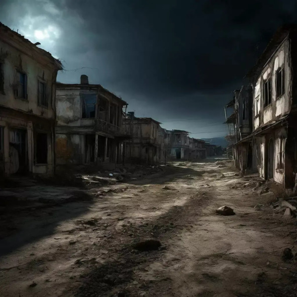 На улицах царит тишина, лишь время от времени слышен скрип ветра, который гонит песок. Величественные прежде арки и колонны – теперь сломанные и обветшалые. Вода в фонтанах давно иссякла, оставив лишь высохшие, покрытые мхом камни.