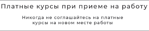 Курсы за ваши деньгиНекоторые компании предлагают вам перед началом работы купить их курс/тренинг, на протяжении которого вас будут обучать. Хорошо, если это будет стоить 500 рублей, еще можно на это пойти, хотя и не стоит, а ведь иногда это стоимость обучения бывает от 10 000 рублей и выше. Компании, дорожащие своей репутацией, никогда не предложат вам купить за свой счет стажировку, курсы по повышению квалификации, тренинги и так далее. В связи с чем стоит иметь в виду, что, если при первой встрече из вас сразу пытаются «выкачивать» деньги – бегите из такой компании как можно быстрее. В такой компании вы будете постоянно должны и денег точно не заработаете.