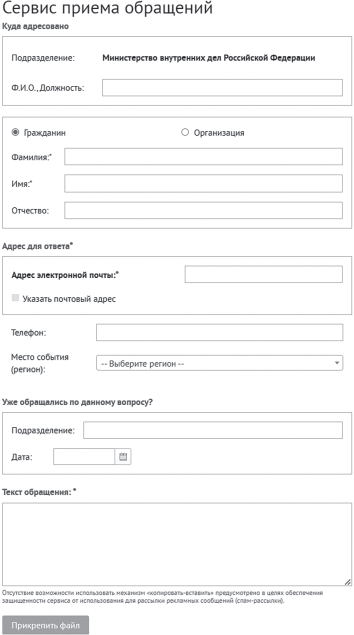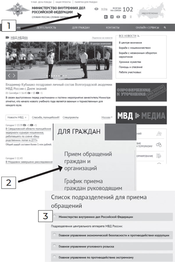 В случае если вы пишете заявление о событиях, произошедших в Марьино, а заявление направляете в МВД России, то вам также сообщат, что ваше заявление направлено для рассмотрения в отдел МВД России по району Марьино. Поэтому пишите лучше в тот отдел, на территории обслуживания которого это случилось. Так будет гораздо результативнее, поскольку, пока из МВД России передадут в ГУ МВД России по г. Москве, из ГУ МВД России по г. Москвы передадут в отдел, пройдет много времени. Если вы думаете, что, чем «выше» пишете, тем серьезнее отнесутся к вашей проблеме – не обольщайтесь, бюрократия все равно сильнее.