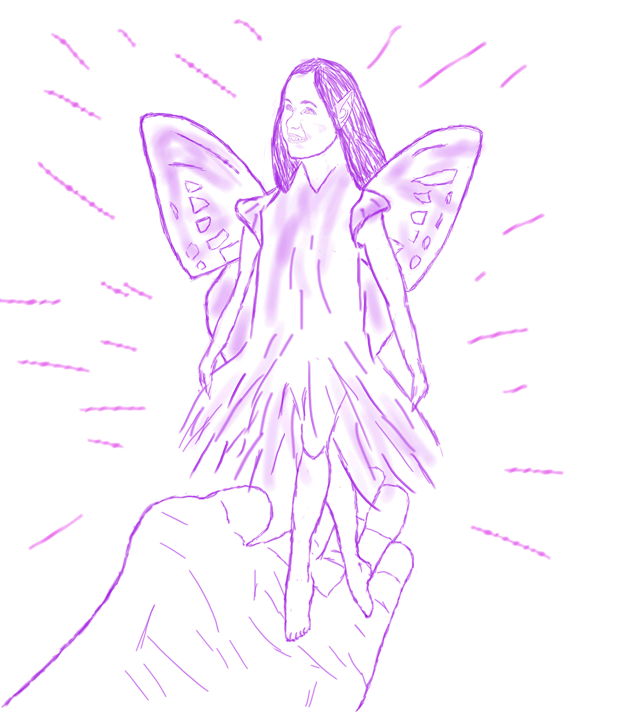 Так я же стою перед деревьями сирени, которые в детстве росли перед моим домом. На них около десятка маленьких человечков. Одно прекрасное создание спускается ко мне на ладошку. Хочется плакать: я в своём детстве, а передо мной на ветках маленькие золотисто-жёлтые существа с двумя парами полупрозрачных крылышек. Эти существа один в один как люди, и у них есть то, что напоминает нашу одежду. Да, это одежда, которая составляет целое с телом. Существа обоих полов, они окружены прозрачным, мерцающим золотисто-жёлтым полем. Прекрасное создание, которое село на мою ладошку, – в юбке-солнце и кофточке ретро-стиля.