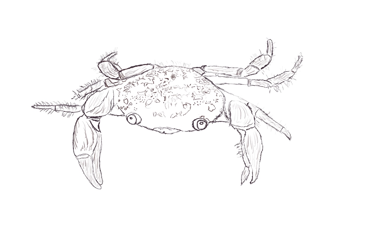 Пока наблюдал за кристаллами, замечаю существо, похожее на креветку, моих размеров, которое меня внимательно изучает. Особенно запомнились глаза, с которыми мы встретились друг напротив друга.