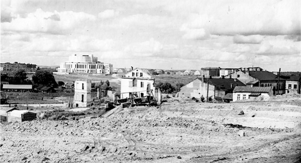 Минск, мой родной город, разрушен так, что я еще не видел ни одного целого кирпичного дома, всюду горы разбитых, разрушенных, обгорелых домов – «погорелки», кирпично-красные холмы. Нет улиц, деревьев, фонарей – город умер, только в нижней части города течет мрачная безжизненная река, а на окраинах уцелели от немецких и советских бомбардировок одноэтажные частные домики и солдатские бараки