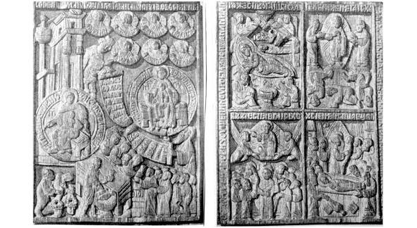 Двусторонняя икона: Премудрость созда себе храм; Праздники. Мастер поп Анания. Около 1517 – 1525 гг. Дерево, резьба.