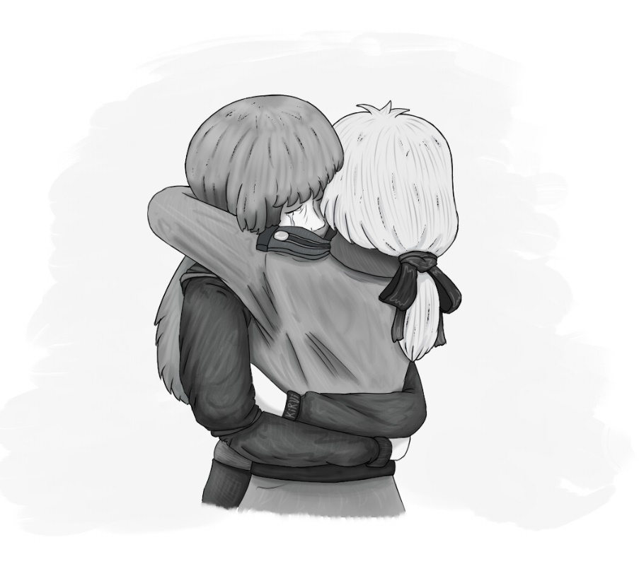 После этих слов на лице её матушки проступили слёзы, и она отвела взгляд в сторону. Юноша замолчал и поник головой. Он прижал к себе сестру в объятиях и сказал: