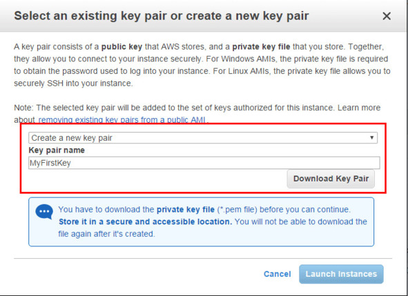 – Во всплывающем меню выберите Create a new key pair и присвойте новой паре имя. Затем нажмите Download Key Pair (рисунок 93)