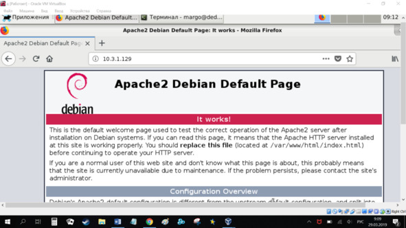 На рисунке 87 можно увидеть, как выглядит созданная нами интернет-страница на созданном нами веб-сервере apache на debian.