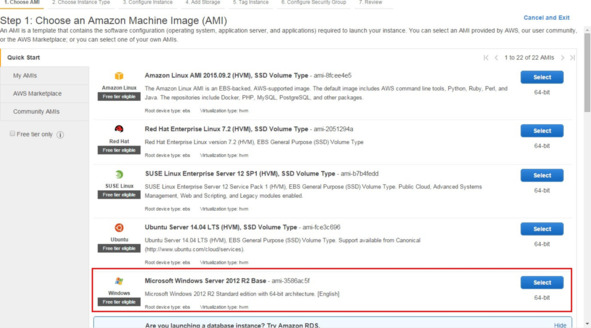 – С помощью Amazon EC2 можно указать программное обеспечение и параметры инстанса, который требуется использовать. Выбираем нужный образ и нажимаем Select (рисунок 90)