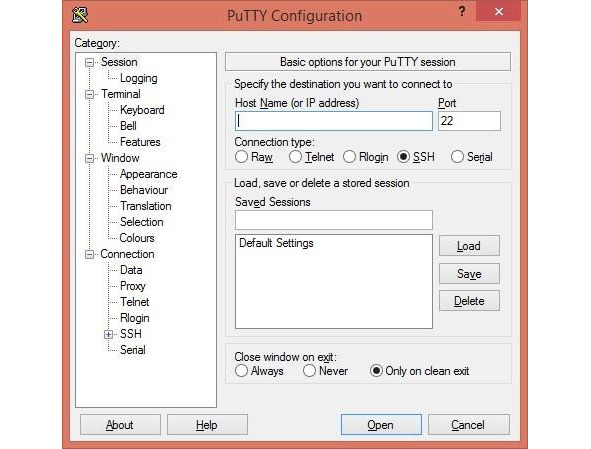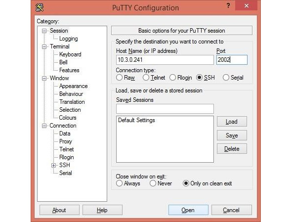 5) Прописываем адрес хоста и порт, ставим флажок на SSH (рисунок 26). Нажимаем кнопку «open»;