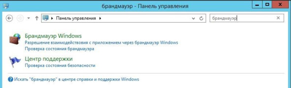 3) В открывшейся панели управления введите в поиск «брандмауэр»;