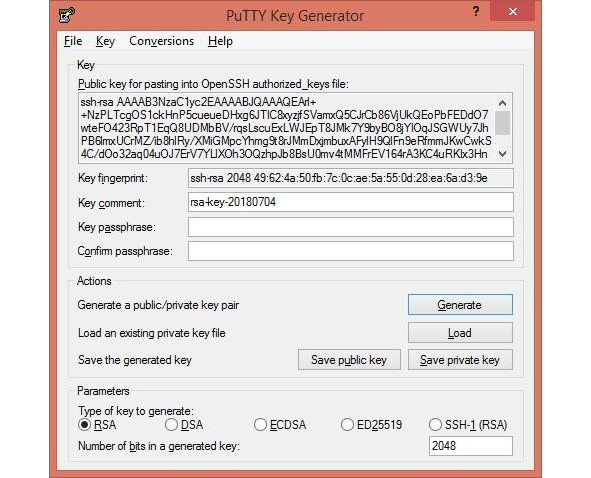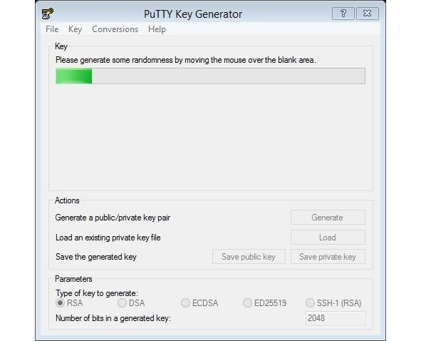 1) Запускаем программу puttygen. exe (рисунок 8), флажок на RSA. Размер ключа 2048. Нажимаем кнопку generate;
