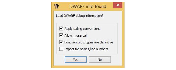Иногда после компиляции в файле остаётся отладочная информация. Тогда IDA покажет окно, изображённое на рисунке 62 с предложением загрузить отладочную информацию.