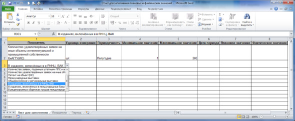 Сбор и контроль значений показателей на данном этапе (тестовой версии проекта) реализован с использованием файлов Microsoft Excel. Для сбора установленных показателей определены ответственные за ввод значений. При этом ответственным лицам автоматически формируется рассылка информационного письма с перечнем показателей для заполнения и файл Microsoft Excel для ввода фактических значений (рисунок 16).