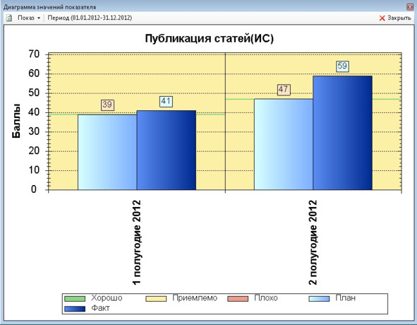 Кроме индикаторов выполнения показателей контроль значений показателей может осуществляться с помощью диаграмм (рисунок 17).