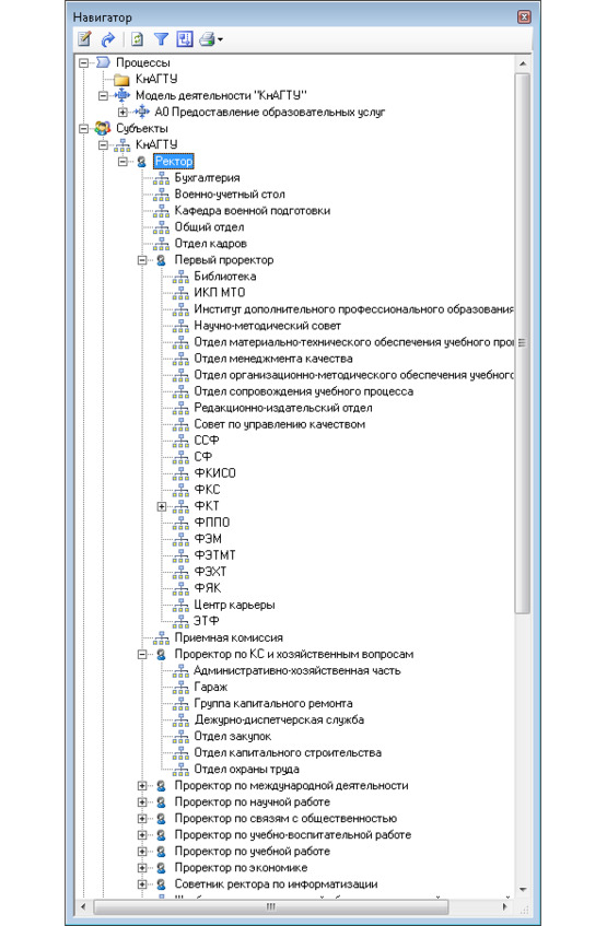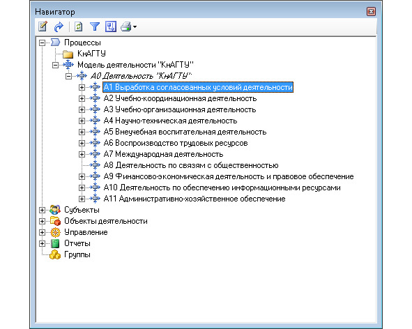 В модели деятельности КнАГТУ определены и введены процессы верхнего уровня и их подпроцессы в соответствии с существующей моделью деятельности вуза (рисунок 7).