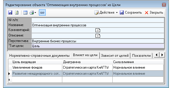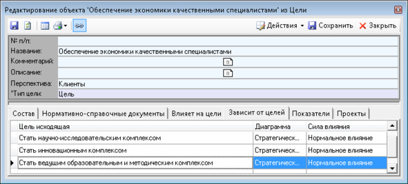 Рисунок 6 – Редактирование силы влияния одних целей на другие